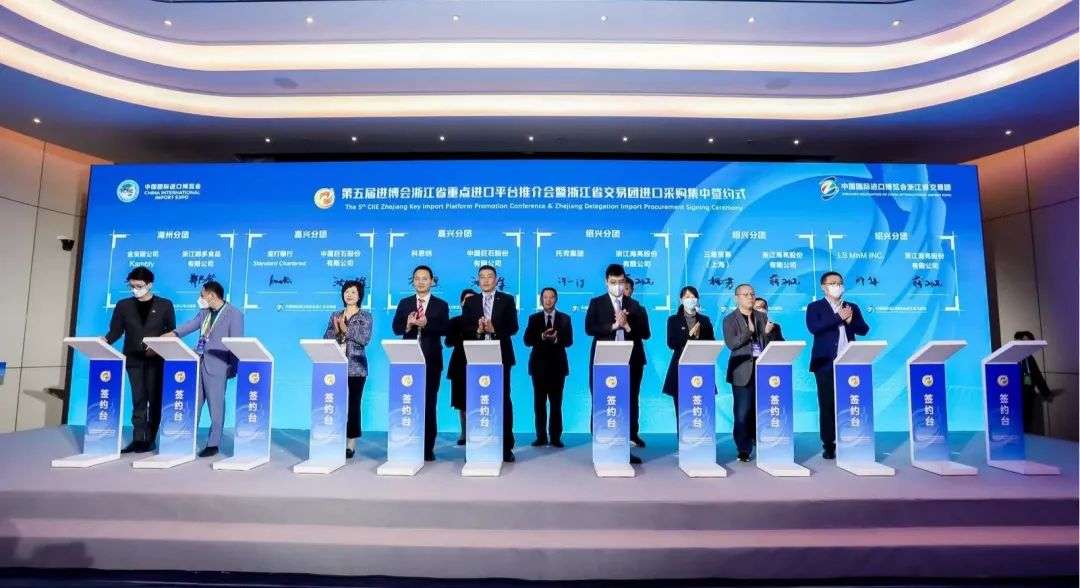 11月6日上午,第五屆進(jìn)博會(huì)浙江省重點(diǎn)進(jìn)口平臺(tái)推介會(huì)暨浙江省交易團(tuán)進(jìn)口采購(gòu)集中簽約式在上海舉辦。海亮股份獲授“第三批浙江省重點(diǎn)進(jìn)口平臺(tái)”牌匾,并作為紹興市交易團(tuán)簽約企業(yè)代表上臺(tái)簽約。