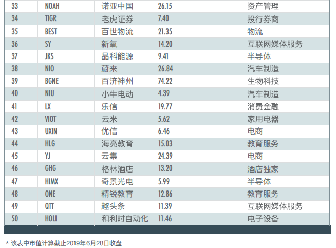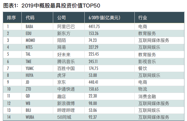 2019中概股最具投資價值TOP50