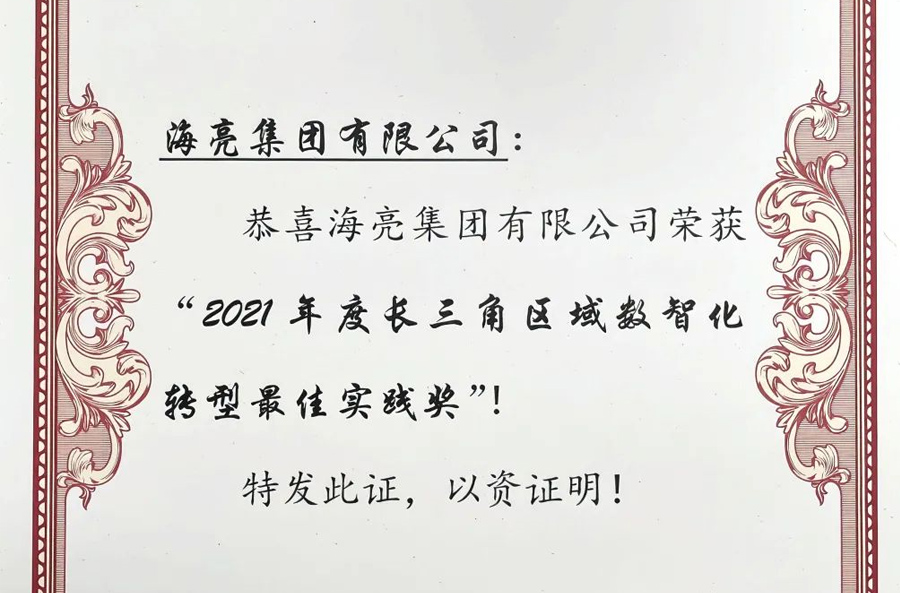 海亮集團榮獲“2021年度長三角區域數智化轉型最佳實踐獎”