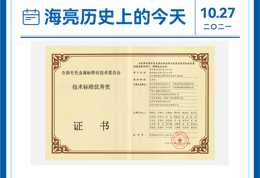 海亮印記丨海亮股份三項國家標準獲“全國有色金屬標準化技術委員會標準優秀獎...